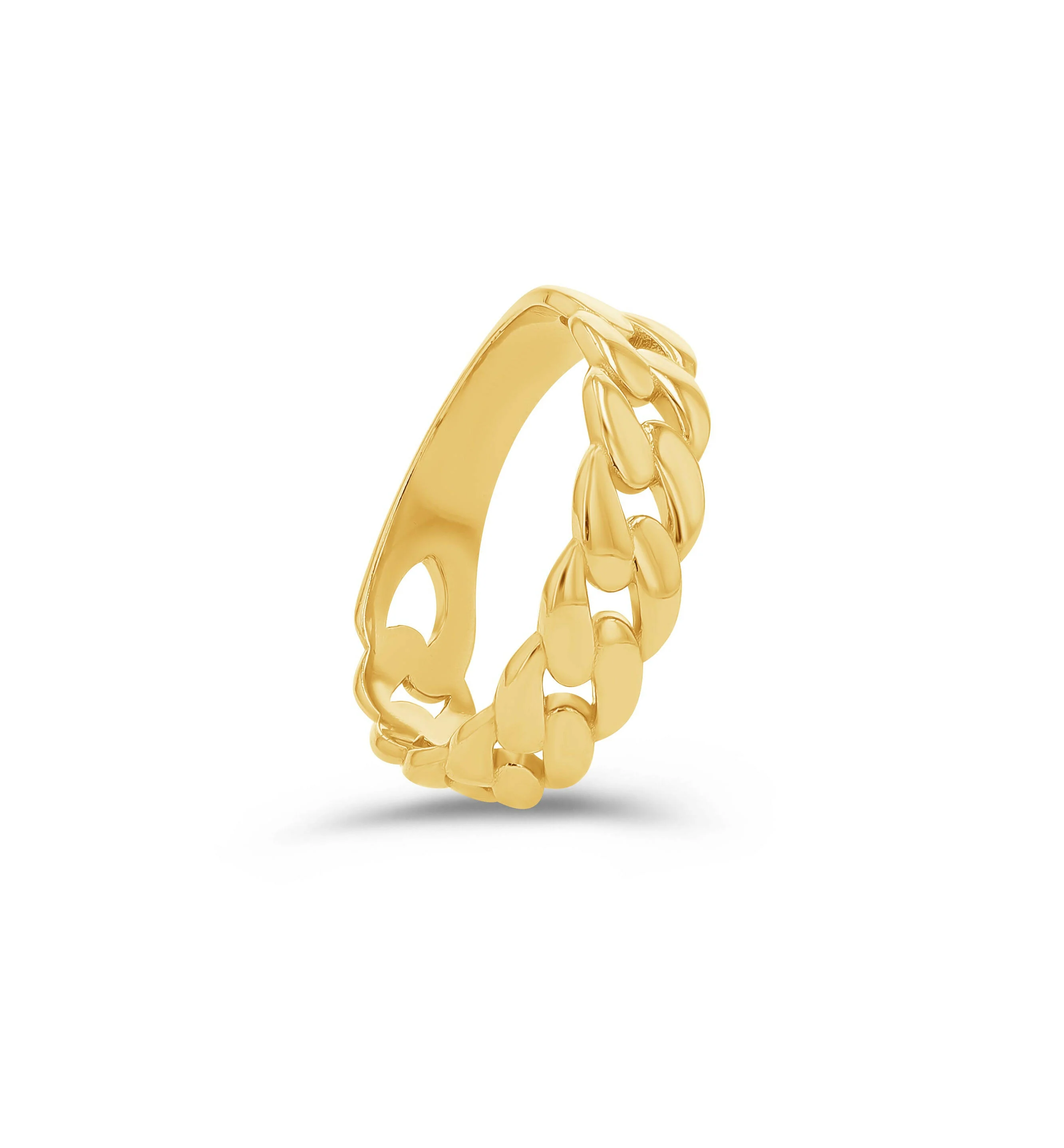 Simple, classic, and quietly bold, this 14K Yellow Gold Ring brings the timeless Cuban link motif into a sleek and wearable form. Crafted with smooth, fluid lines and a high polish finish, each interlocking link reflects light gently, offering a subtle glow that's both refined and inviting.