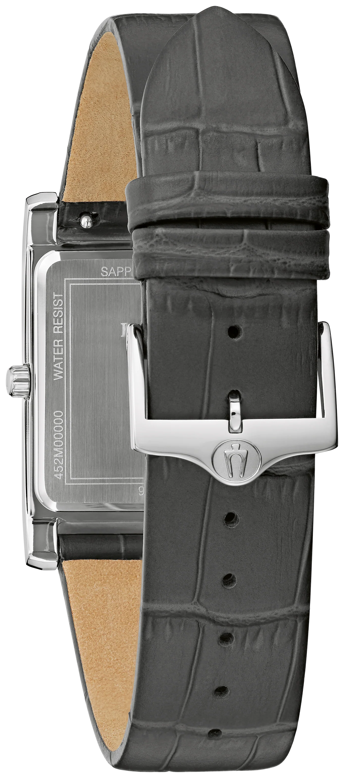 Elevate your everyday ensemble with a timepiece that seamlessly blends vintage charm and modern sophistication. This watch from Bulova's Sutton collection features a distinctive rectangular stainless steel case, offering a sleek profile that comfortably fits under a shirt cuff. The textured gray dial, adorned with rose gold-tone Roman numerals and baton markers, provides a refined contrast, enhancing readability and style. Powered by Bulova's reliable quartz movement, it ensures precise timekeeping with minimal maintenance. The anti-reflective sapphire crystal protects the dial, maintaining its clarity and elegance over time. Paired with a gray embossed leather strap, this watch offers both comfort and a touch of classic appeal.